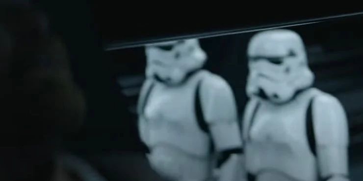 当塔拉被一个军官叫离工作台时,她把通讯器扔在了桌子上,从中可以听到欧比旺·肯诺比还在另一头呼叫。这一场景与《新希望》中卢克、汉、楚巴卡和莱娅被困在死星的垃圾压缩器中的场景非常相似。天行者通过通讯链路对C-3PO大喊大叫,但是机器人的设备被闲置在了桌子上。就像前面提到的治疗箱场景一样,这种取景和方向也是有意与《星球大战》原三部曲系列相似。